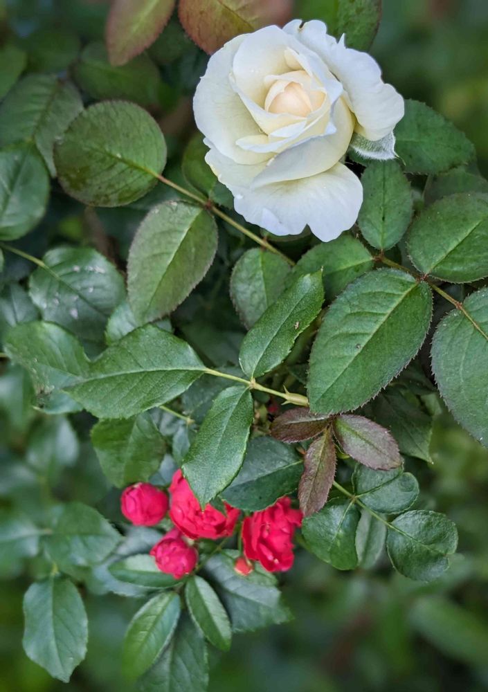 可愛らしい紅白の薔薇さんですが❤️🤍❤️🤍 葉っぱもとても綺麗ですね