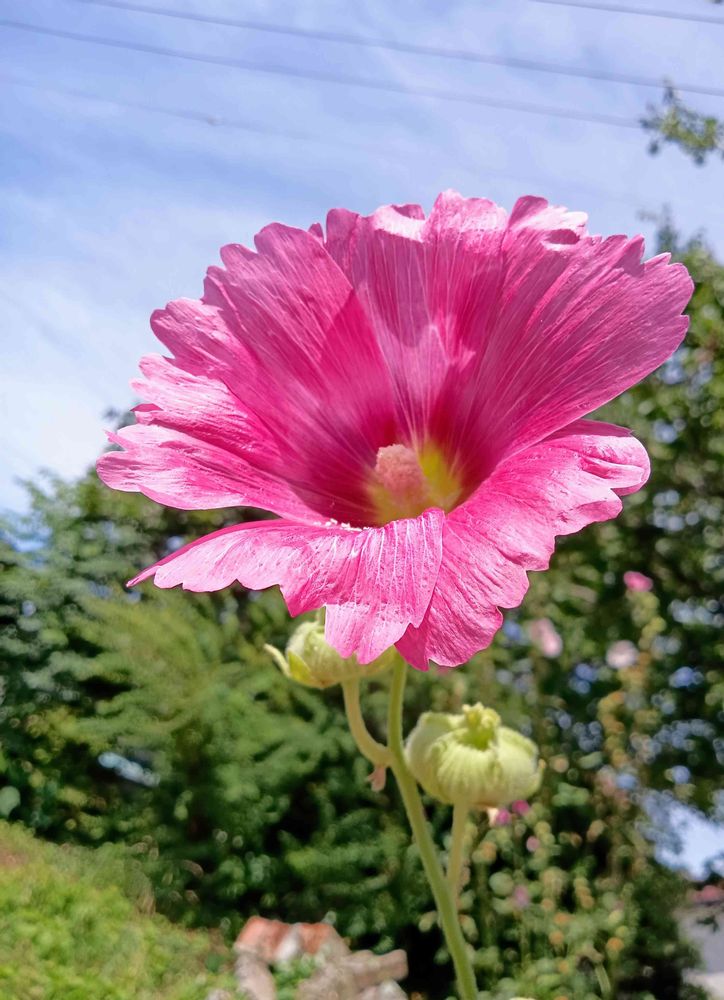 濃いめのピンク色かと思いました😅。写真だと微妙に実物と違う色にも見えますね。大きなタチアオイの花も、もう終わりなのですね。名残惜しい😂