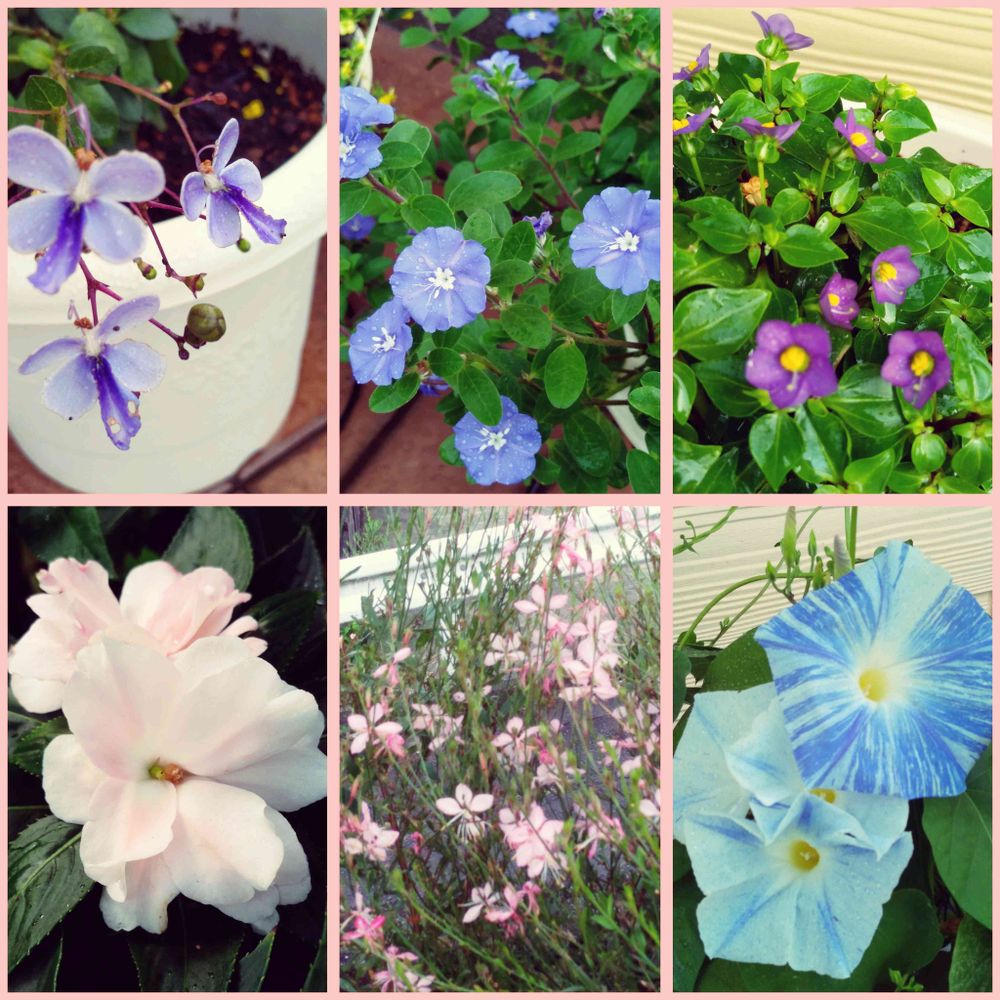 可愛いピンクとブルーの花がたくさん咲いていますね💕︎
