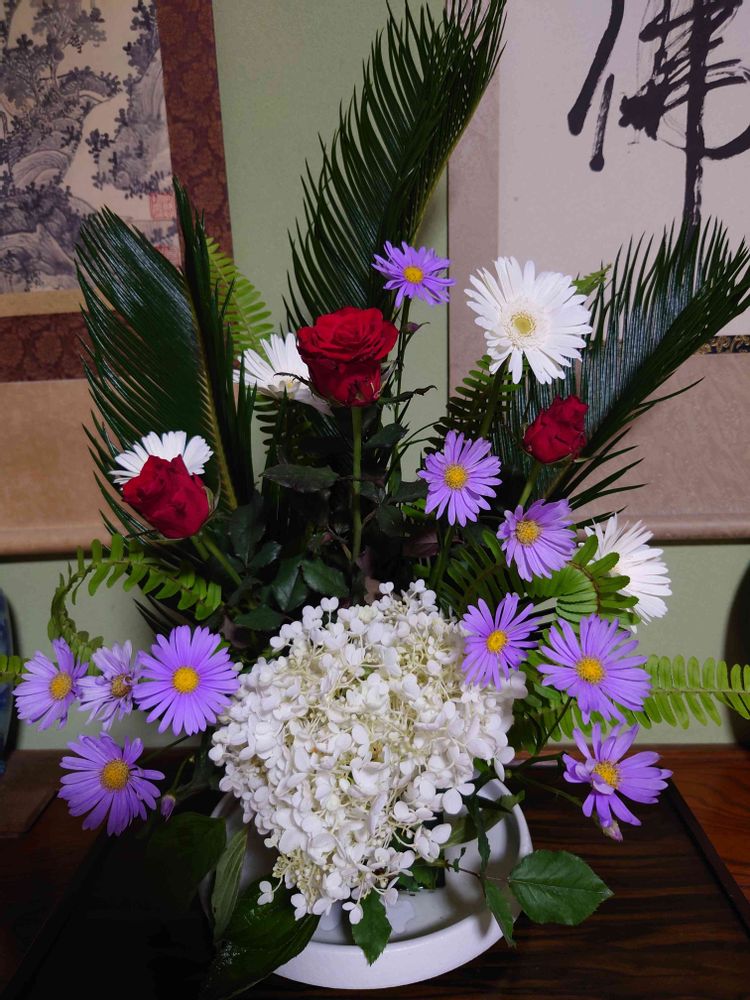 最近、生花のレッスンを受けていないので、久しぶりに生けてみました🎵