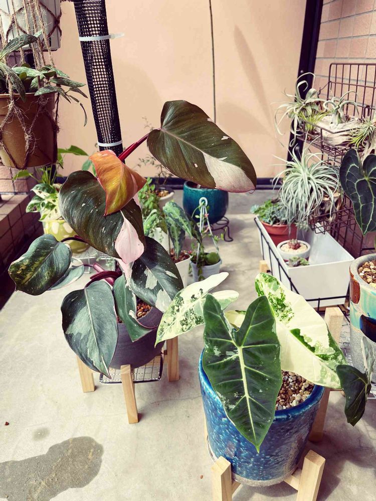 バルコニー/ベランダ,アロカシア・グリーンベルベット,フィロデンドロン・ピンクプリンセスの投稿画像