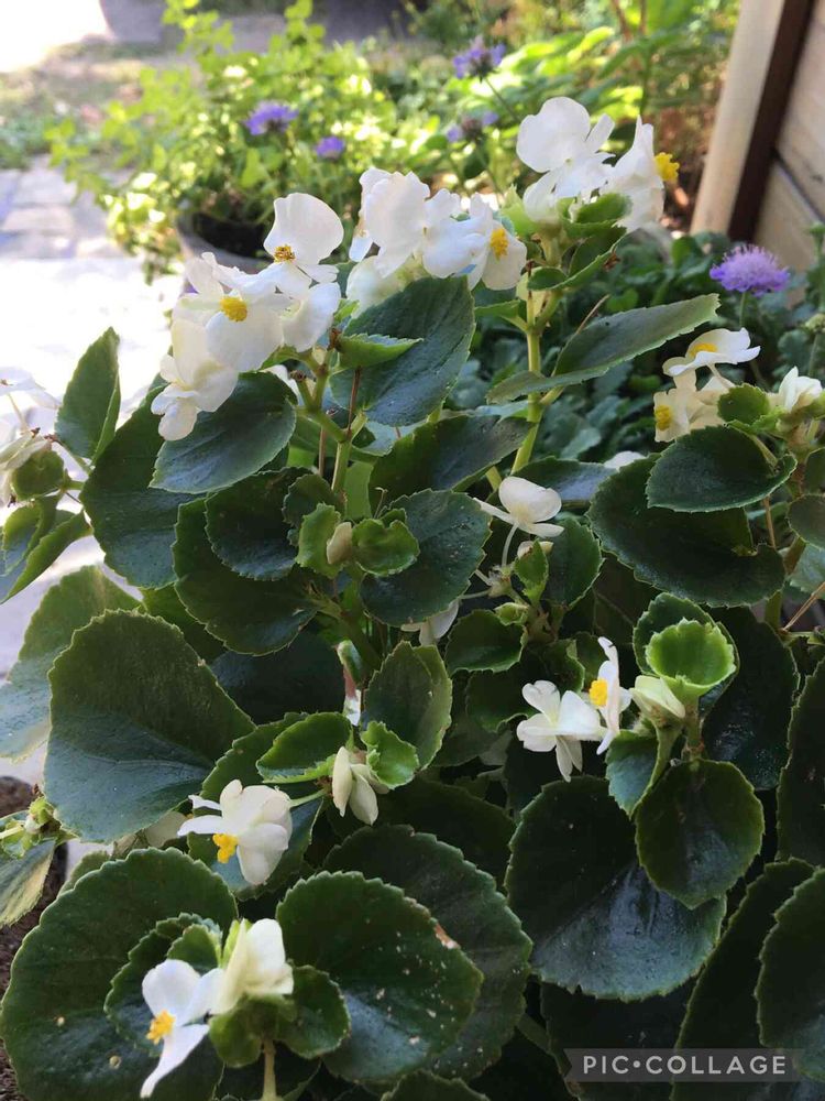 玄関のベゴニアがとっても元気で、濃いグリーンの葉っぱと白い花のコントラストが涼しげに感じます😊