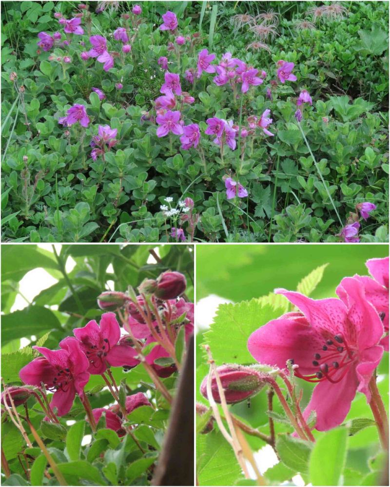 チングルマの綿毛と肩を並べて咲いているエゾツツジ。
