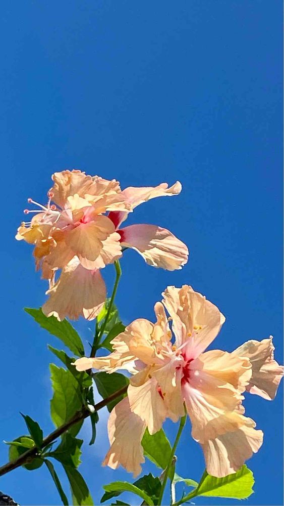アプリコット色のハイビスカス🌺さん、挿し木から、こんなに立派に‼️