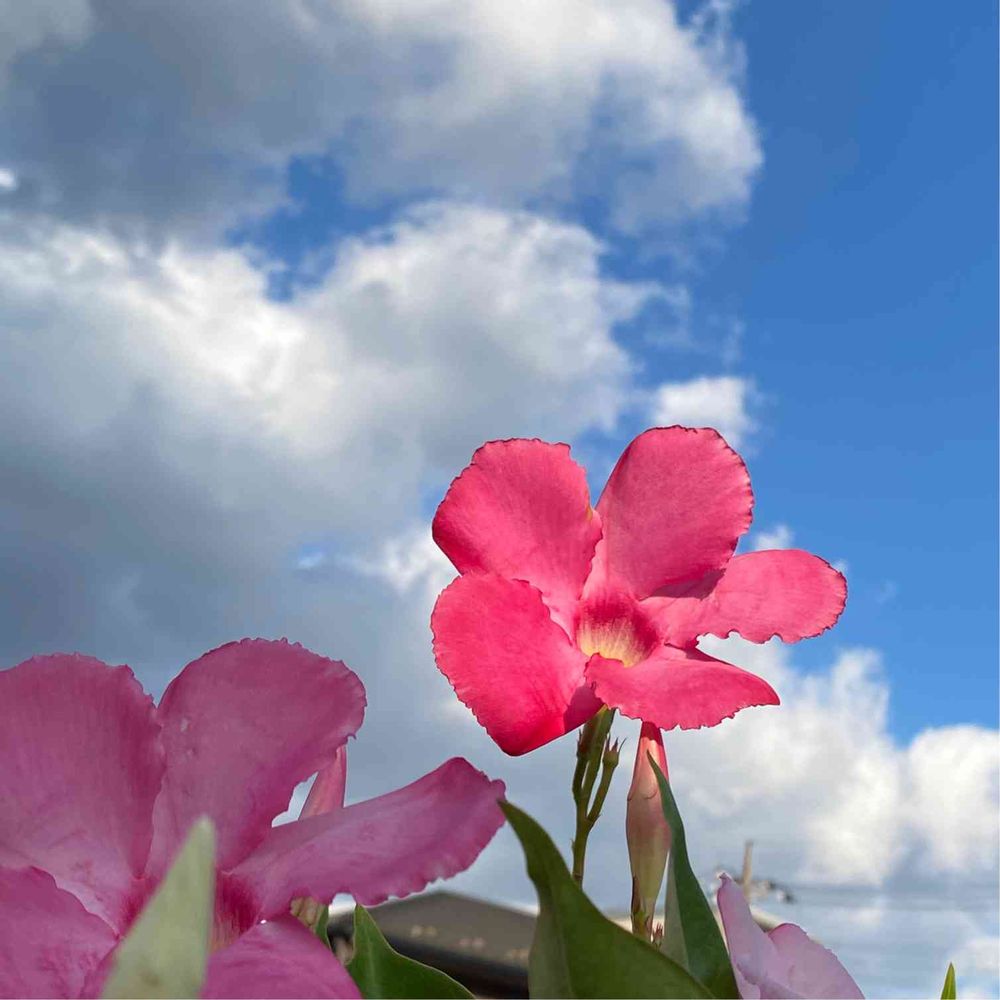 強烈な日差しのせいか、花と空の境目が境目がくっきりしすぎて変な感じですが、合成ではありません😅