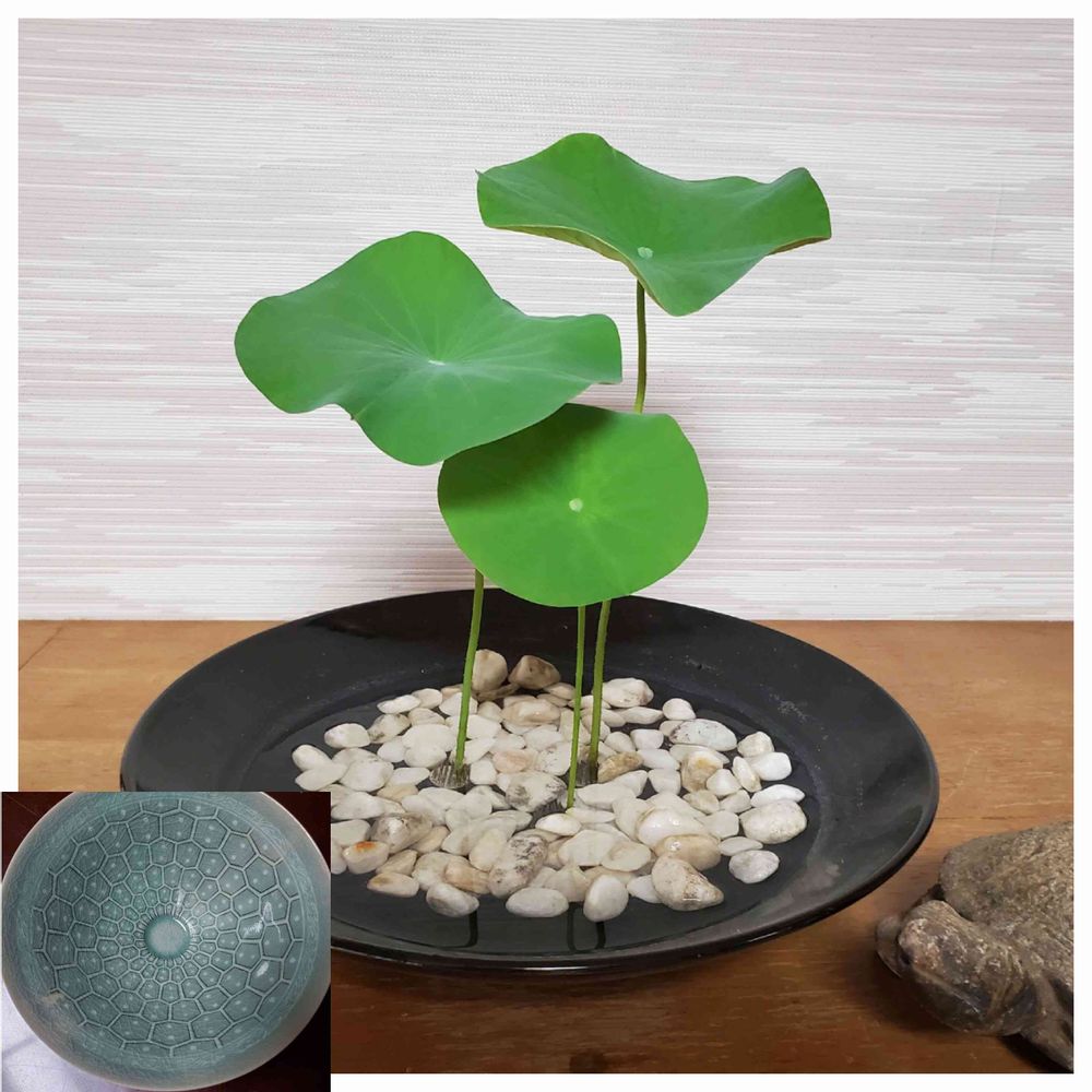 蓮の葉生け花も、お茶碗も涼しげで素敵❣️