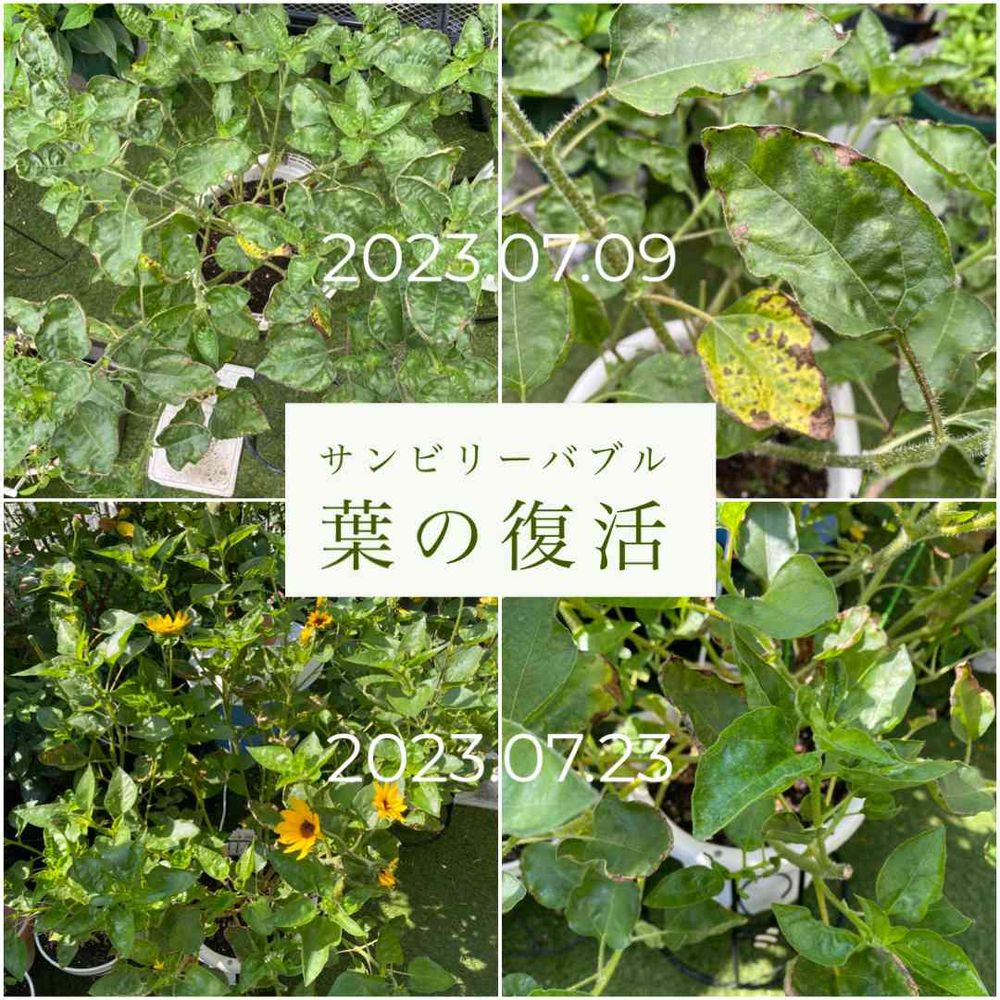 要は、新しい葉をどんどん出そうと言うことです。ひまわりの葉はすぐに悪くなりがちです。ただ、サンビリーバブルは多花性だから、葉も次々と出てきそう→ならば新葉に更新していけば良い。という発想です。