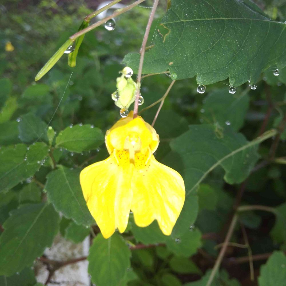 緑の藪の中、黄色が眼を