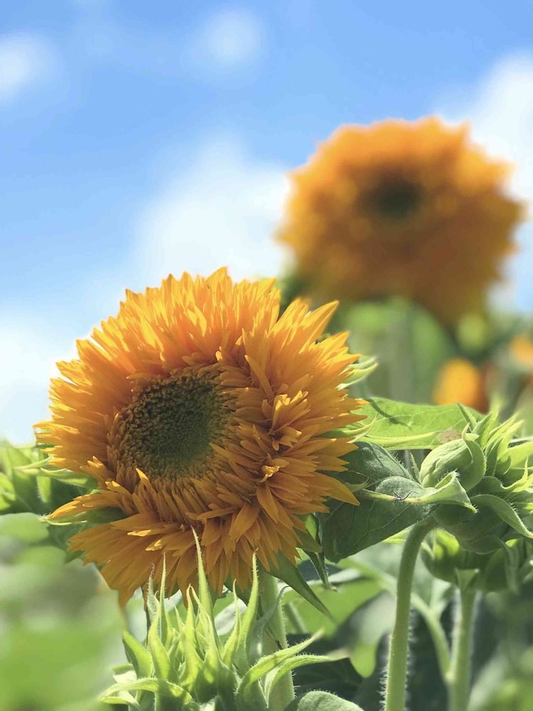 ビタミンカラーの八重咲きの ひまわりさんに🧡💛🧡💛🧡