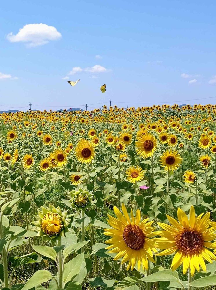 さん、だってひまわりを見てると夏☀️と言う感じがありますが蝶々の上の雲☁️は天使の羽みたいだし暑苦しくなくて爽やかだから何度も見てます👀。ごめんなさいね💦