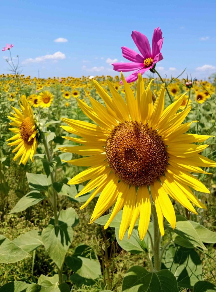 ひまわり🌻🌻さんとピンクのコスモスさん、凄く綺麗ですね🥰👍