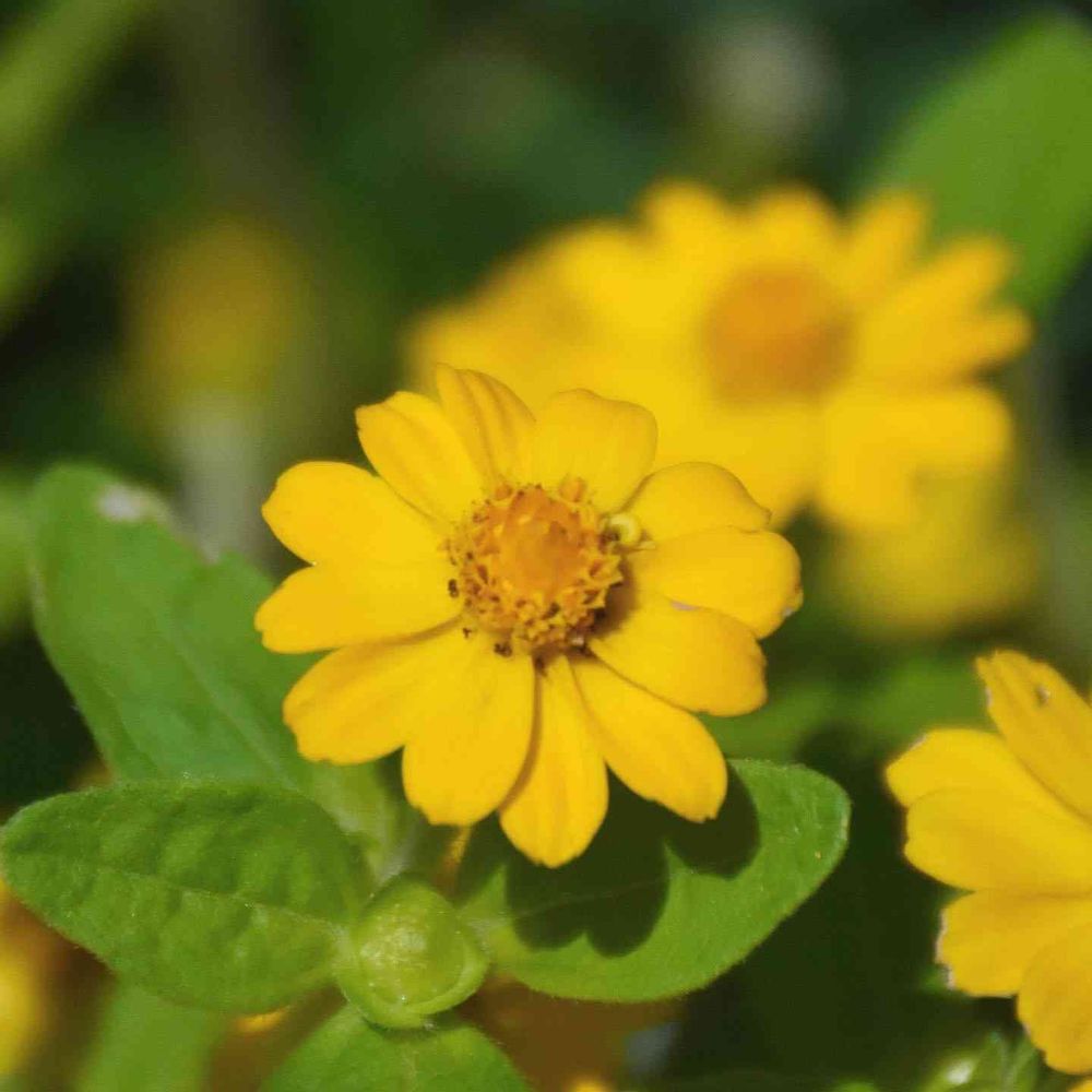 【研究学園の花々】2023年7月17日、猛烈な暑さにもめげず、研究学園の住宅地にメランポジウムが元気に咲いていました!