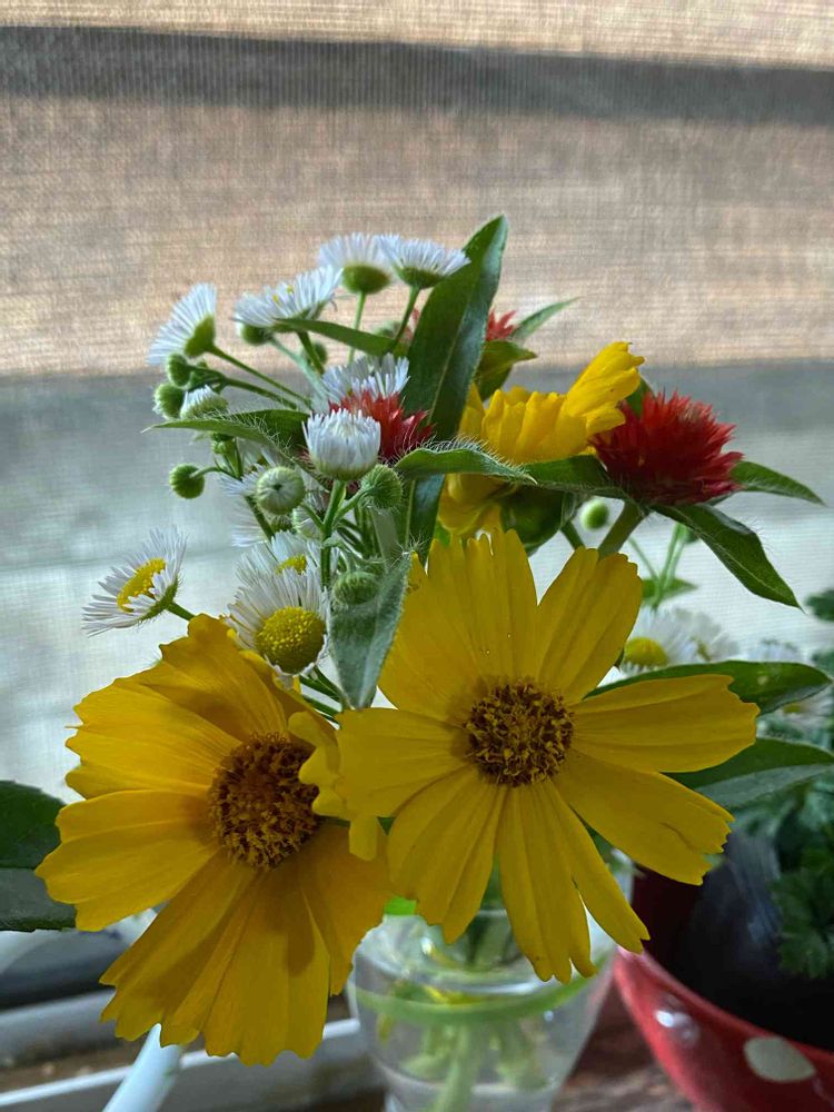 朝のウォーキングで見つけたお花を窓辺に飾りました🎶