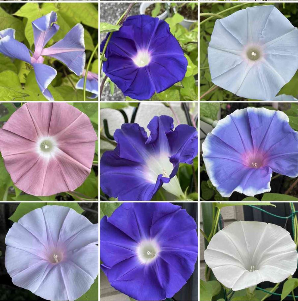 朝顔 青乱菊葉青紺覆輪乱菊石畳咲が昨日から咲き始め、今日も4輪咲いてます。