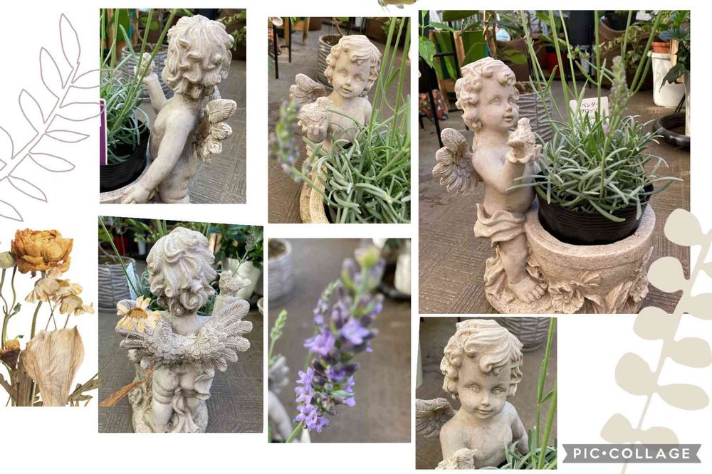 10年以上前に近所にあったガーデングッズショップの閉店時にお得に買ったエンジェル鉢。経年劣化の雰囲気もまた良いかも…