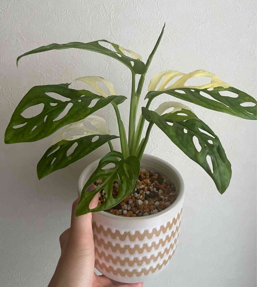 穴ぼこの可愛い葉っぱに白と緑のグラデーションに一目惚れ