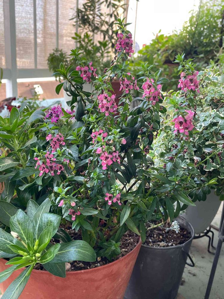 ピンク色の寄せ植えで、アンゲロニアだけは沢山咲いてくれてます😊🌸