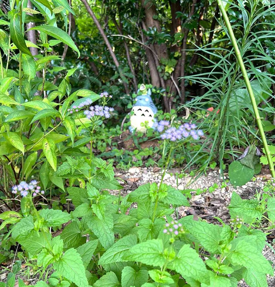 ユーパトリウムが咲き始めました。スマホカメラはトトロにピントを合わせようとするんだよね。なんだか夏休み感🌻