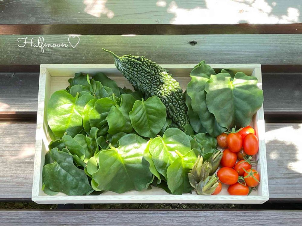 収穫した野菜を並べて観賞するだけでも癒しですよね〜😄