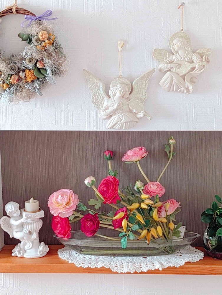 造花で古いですが、色褪せも無く綺麗なので、ずーっと飾っています🌹
