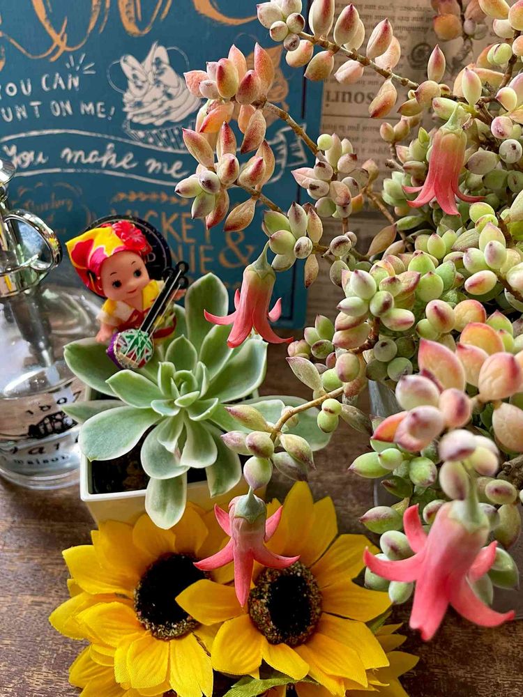 我が家のシワシワ、スカスカ、コゲコゲの(¯―¯٥)ペンデンスさんにも、お花が咲きました🐙❀.(*´▽`*)❀.