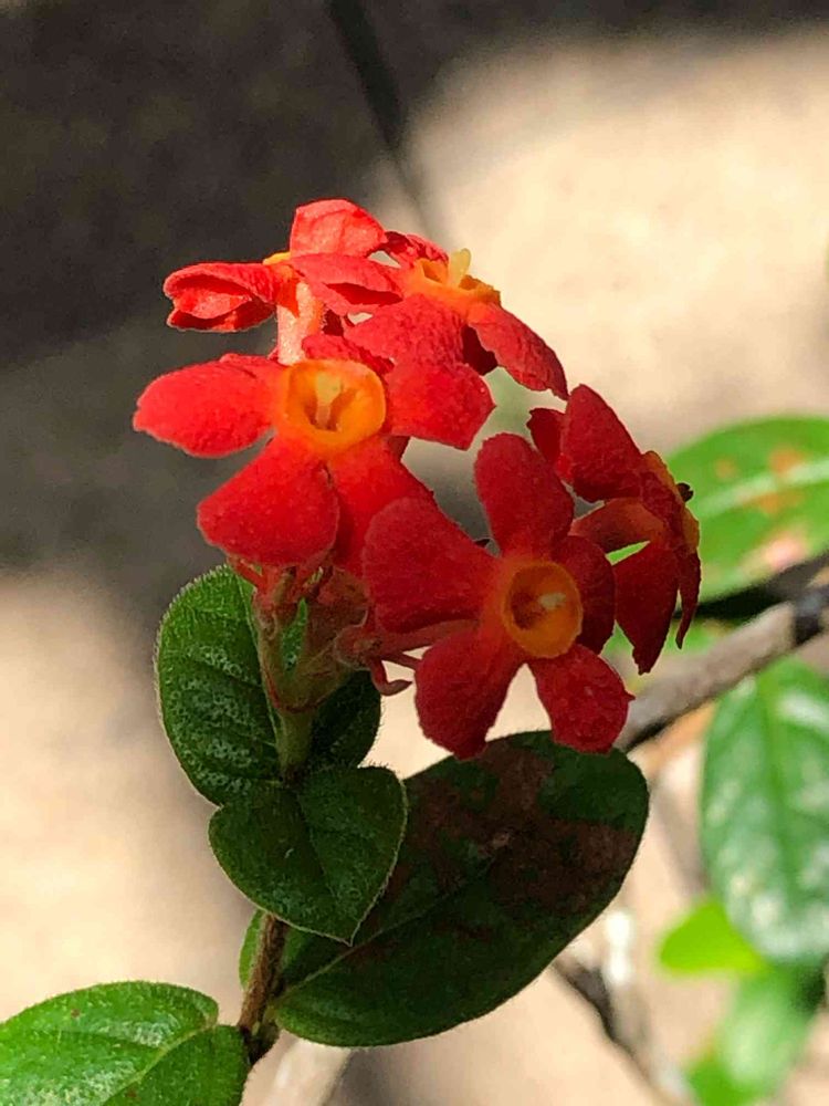 赤や橙色の様な色で1センチくらいの小さな可愛い花🌺