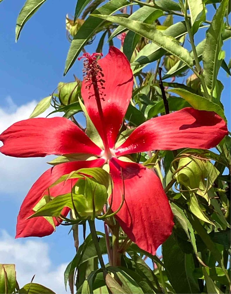青空に真っ赤なモミジアオイ❤️🌿🟦