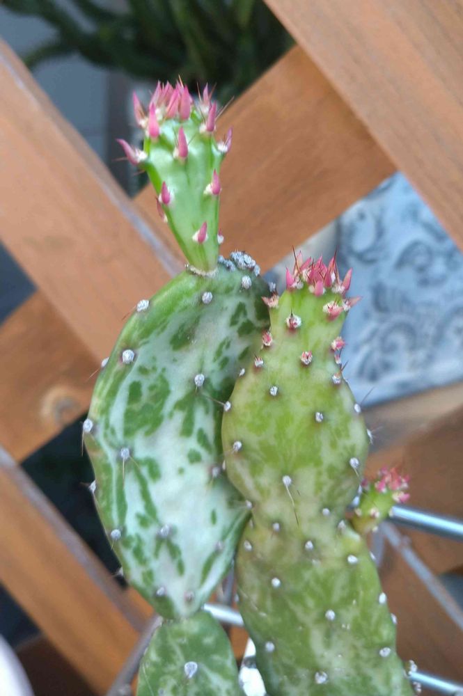ウチワサボテン ハツヒノデ(初日の出)、葉っぱが赤いから