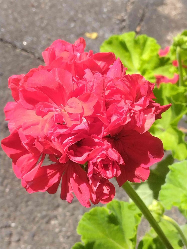 猛暑にも負けず、青々とした葉を携え美しく咲くゼラニュウムのお花に魅了されました。素敵なお色ですね。