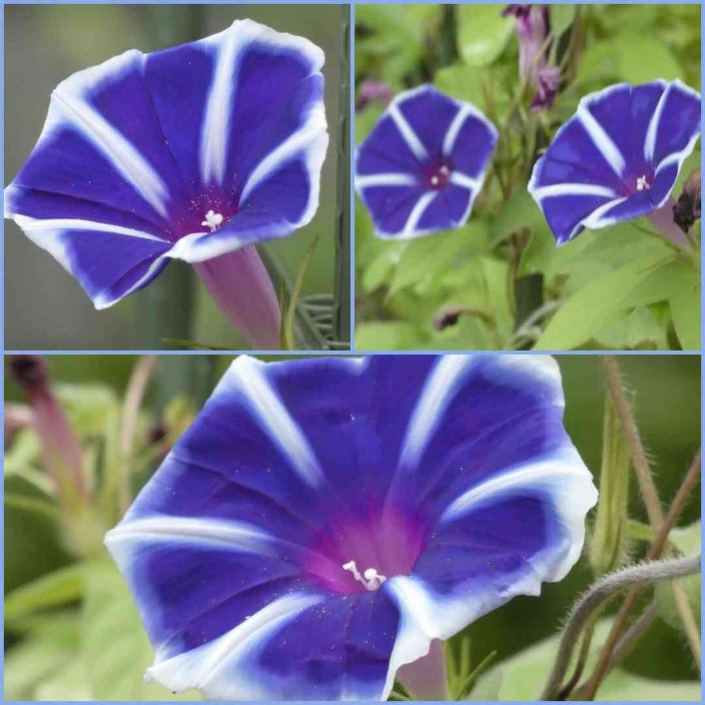 その昔に、白いスジ入りのアサガオのタネを蒔きまして、本当は青だけでなくピンクや薄茶等もあったのですが、青い色だけタネを取って置いて毎年育てています✌️😉
