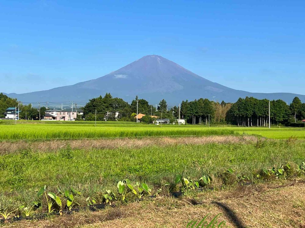 今朝の富士山と、里芋畑