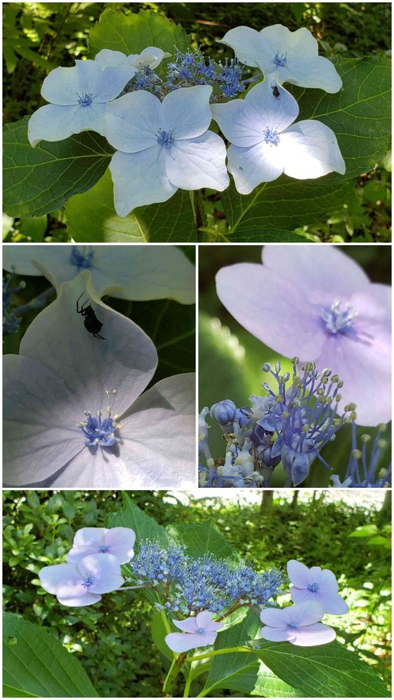 装飾花を良く見ると🔍👀フリフリの淡青も丸い淡ピンクのも、ちゃんと雄しべ雌しべがあるけど中性花なので結実はしないらしい🤔