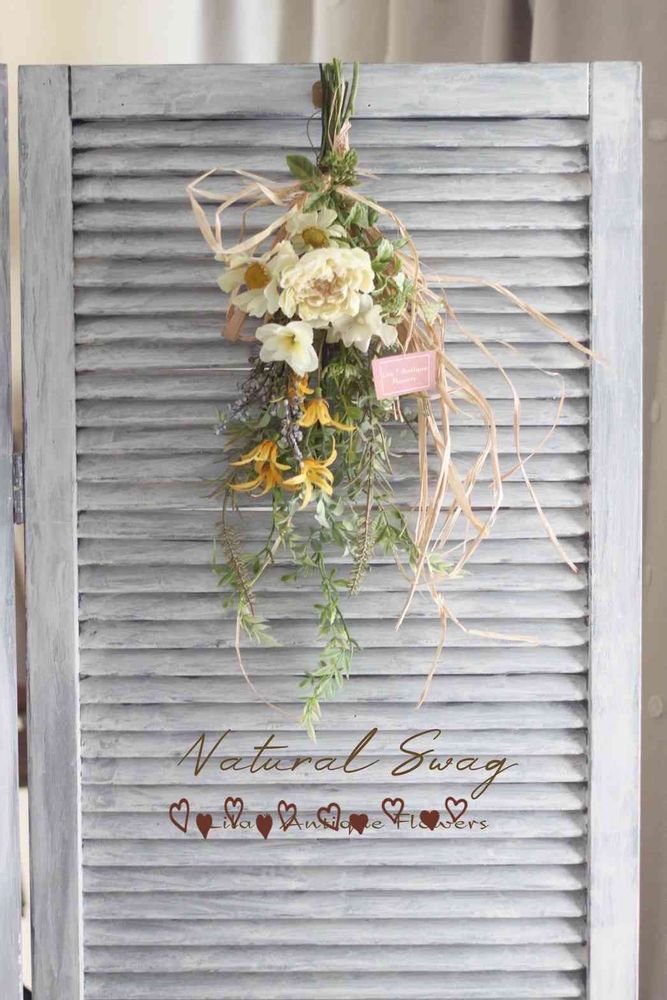 先生のおかげで、ナチュラルで、夏にぴったりのスワッグが出来上がり、嬉しいです💛