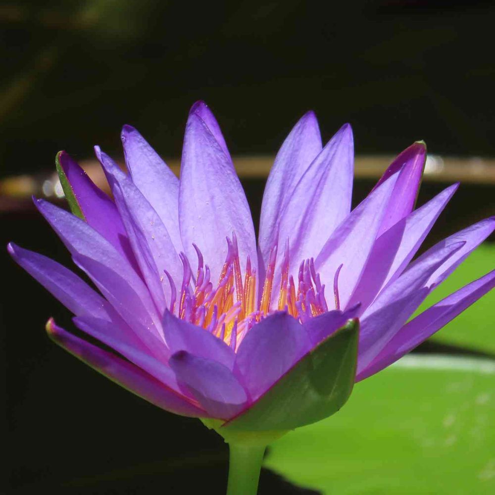 長楕円形の紫色の花びらを3、4重に咲かせる熱帯睡蓮🪷
