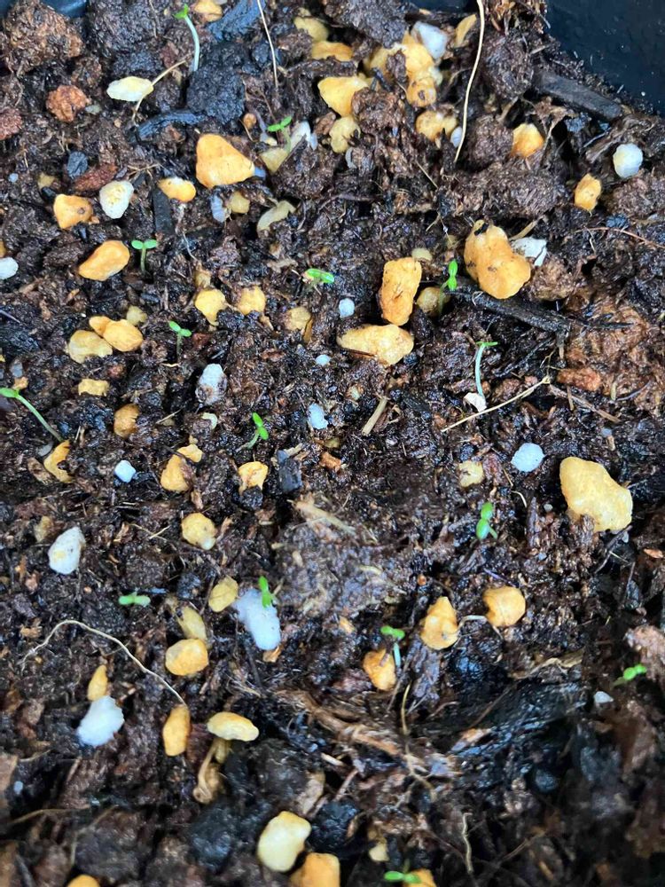 真珠コケモモの種を蒔いて、可愛い双葉🌱が出て来たけれど…室内育成とはいえ、この暑さでは中々育ってくれませんね🥲💦