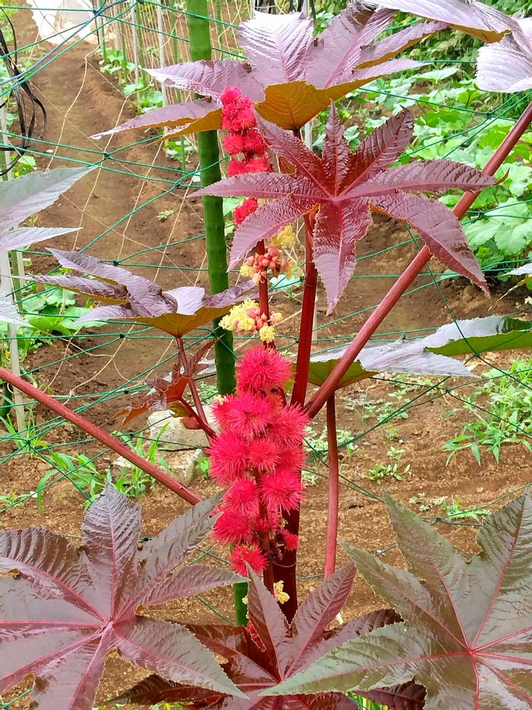 種子から得られる油はひまし油として広く使われており、種にはリシンという毒たんぱく質がある。