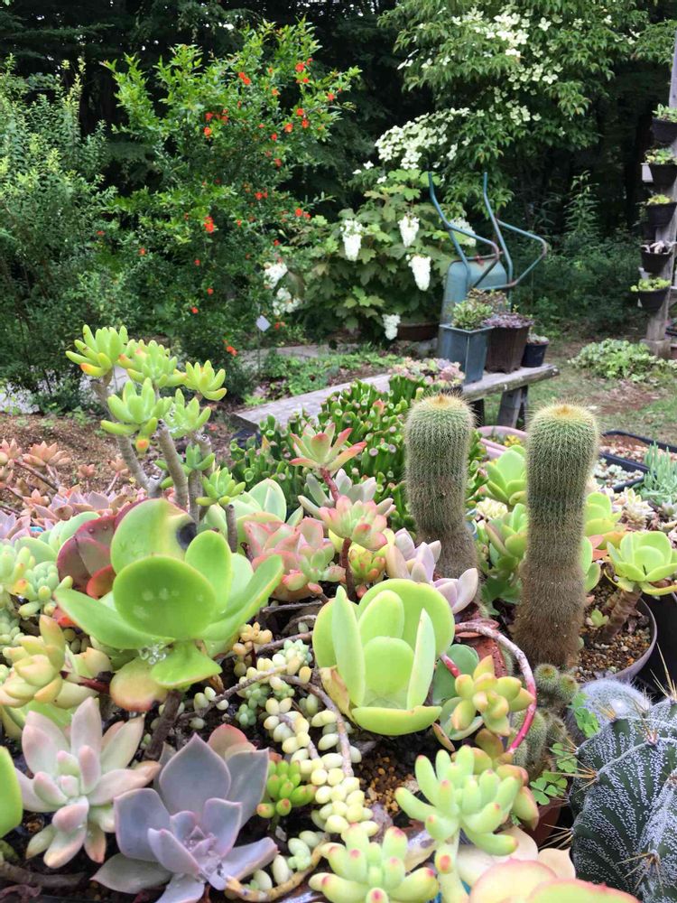 庭の花々が咲き、雨ざらしの多肉、サボテン元気です😊
