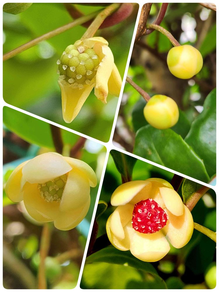 赤🔴 緑🟢の花が有りました。雄花、雌花なんですね。初めて知りました😅赤い実になるのは、緑の雌花ですか?