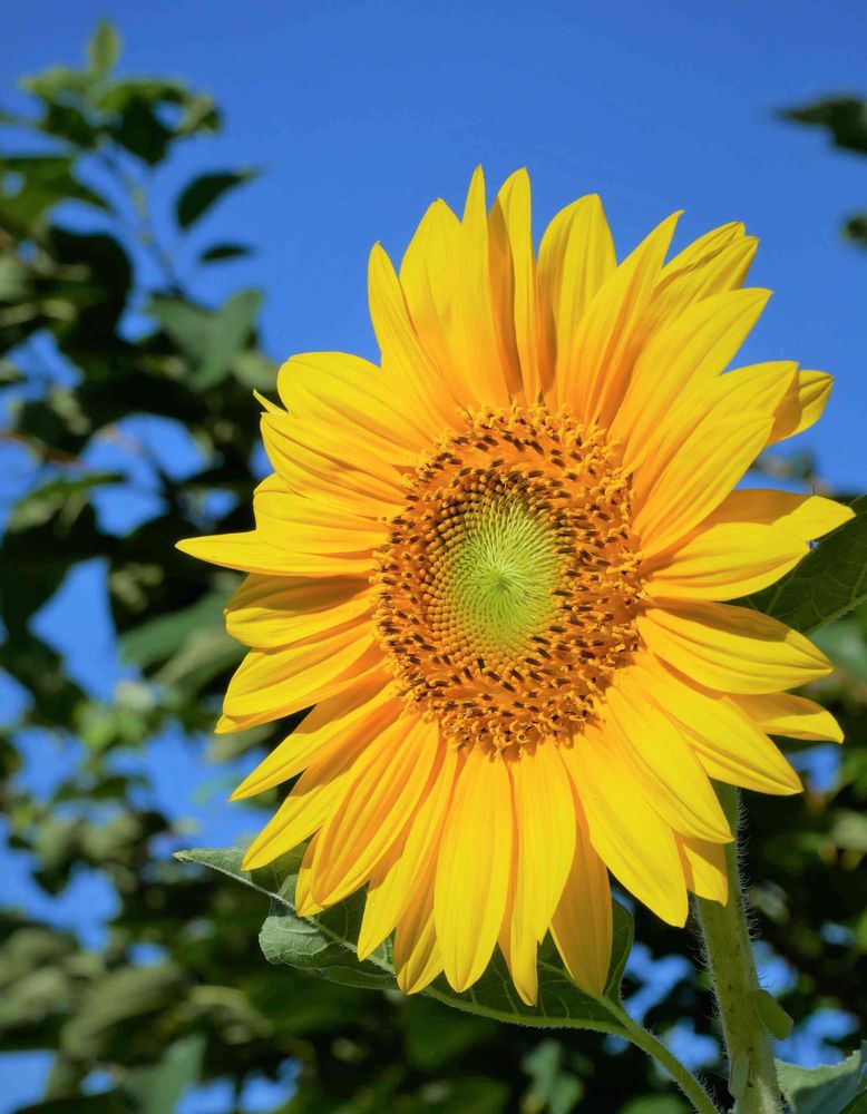 “花弁は濃いオレンジ色で芯はグリーンから美しい橙色に変化する” 最近育てたヒマワリの中で一番のお気に入りです♪
