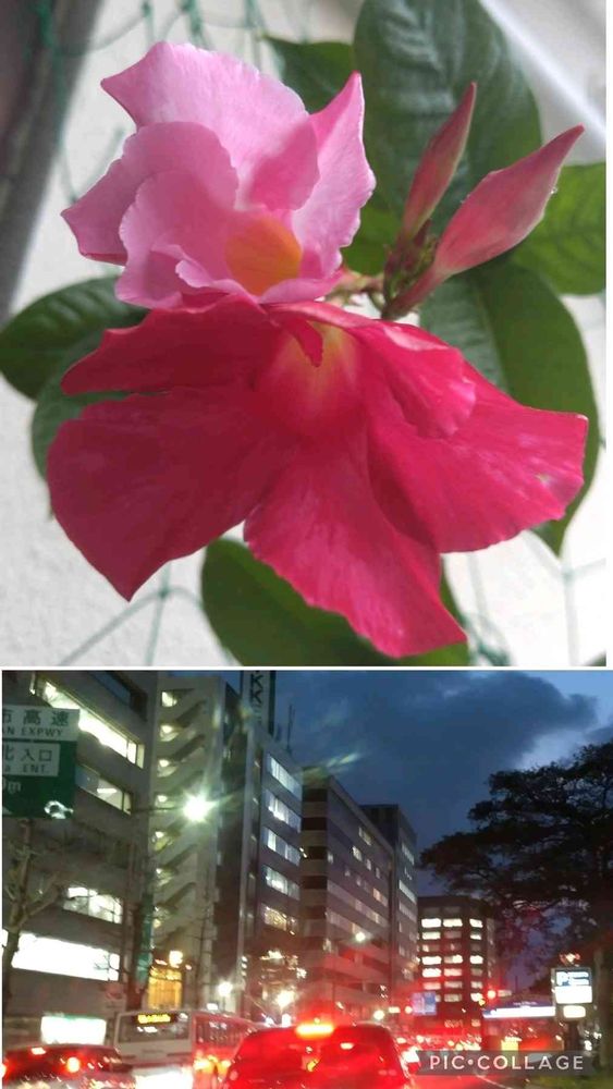 さん、これはマンデビラ・ルビースターなんです。サントリーじゃなくて、サカタのタネだったかな❓️🤔
