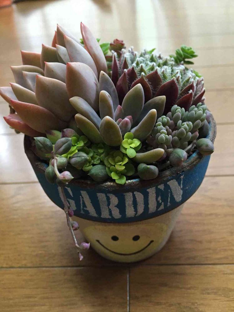 いいでしょぉ(∩ˊᵕˋ∩)・*ニコちゃん鉢にはいつも笑顔にしてもらえるんです♡多肉ちゃんも見たことないものだったし、なんといってもお値段も安いし(o´罒`o)大満足です!!