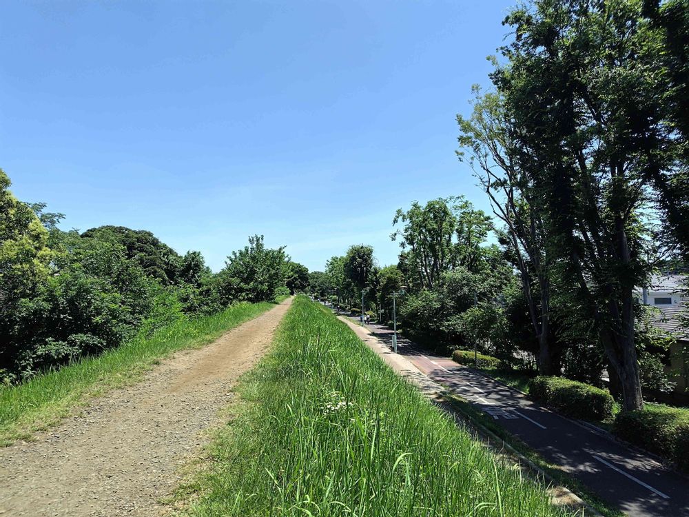このサイクリングロードはサイクリング専用でもなく区間によっては遊歩道があったりなかったり変則的なのですが、この写真の場所は右下がサイクリングロードで左上の土手道は一応歩道なのかな🤔