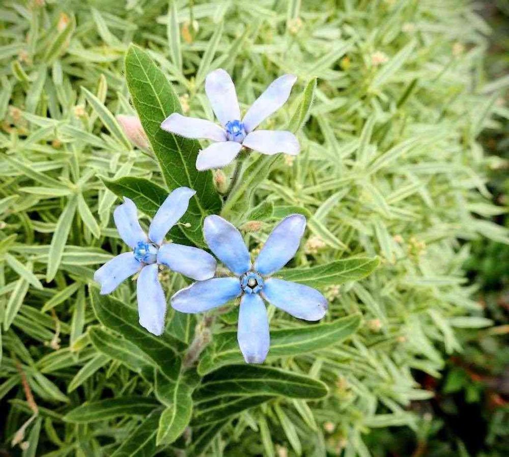 フロスティーナイトは今は猛暑でお花はお休みですが、白い斑入り葉がレースのように涼し気で、水色のオキシペタラムとともに真夏に一服の清涼剤ですねー🥰