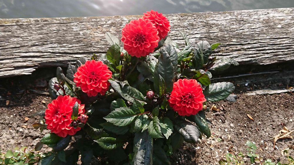 こちらはポンポン咲きのダリアです。写真上部に写ってる枕木みたいなものは運河の囲いの一部です。世界遺産になってるようなアムステルダムの中心地は当然?!豪華に石造りだったり場所によっては煉瓦の装飾があったしますが郊外にいくとこんな風に木で囲ってるだけだったり(数年おきに交換工事してます😁)葭や水生植物生やしてたりと川の土手風?になっていてけっこうローテクのままになってます☺️とはいえ石作りの岸は何せ古いので(数百年クラス)地盤沈下と経年劣化で崩れてニュースになってたりします。ローテクは崩れて当たり前?なので黙って補修するだけでニュースにならないだけかもしれませんが😅