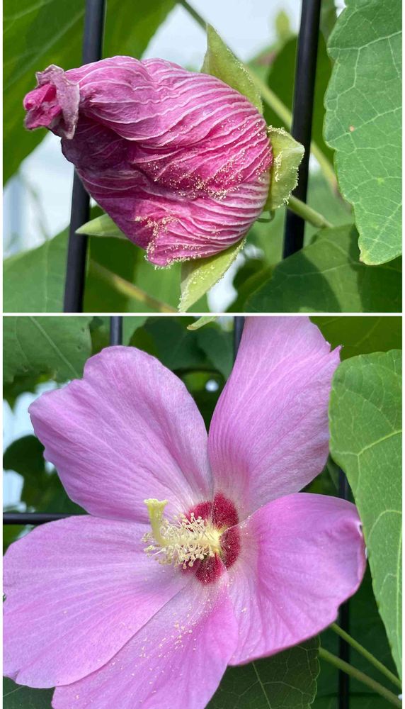 今日はありふれてるけどピンクの芙蓉と木槿🌸で
