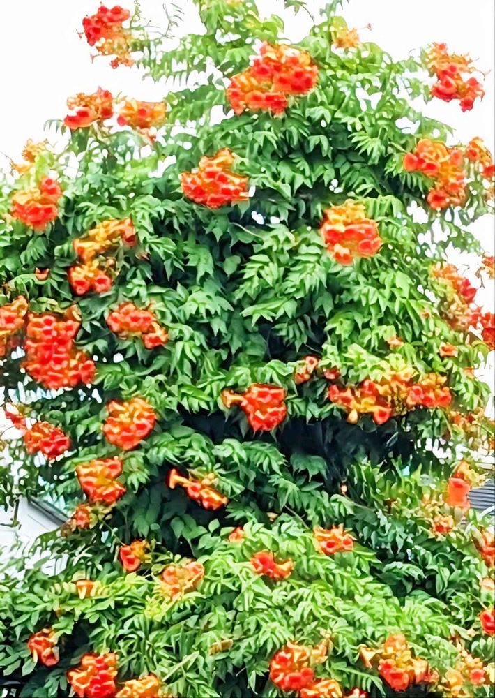 昨日の🐕散歩で撮したご近所のノウゼンカズラ❤️❤️