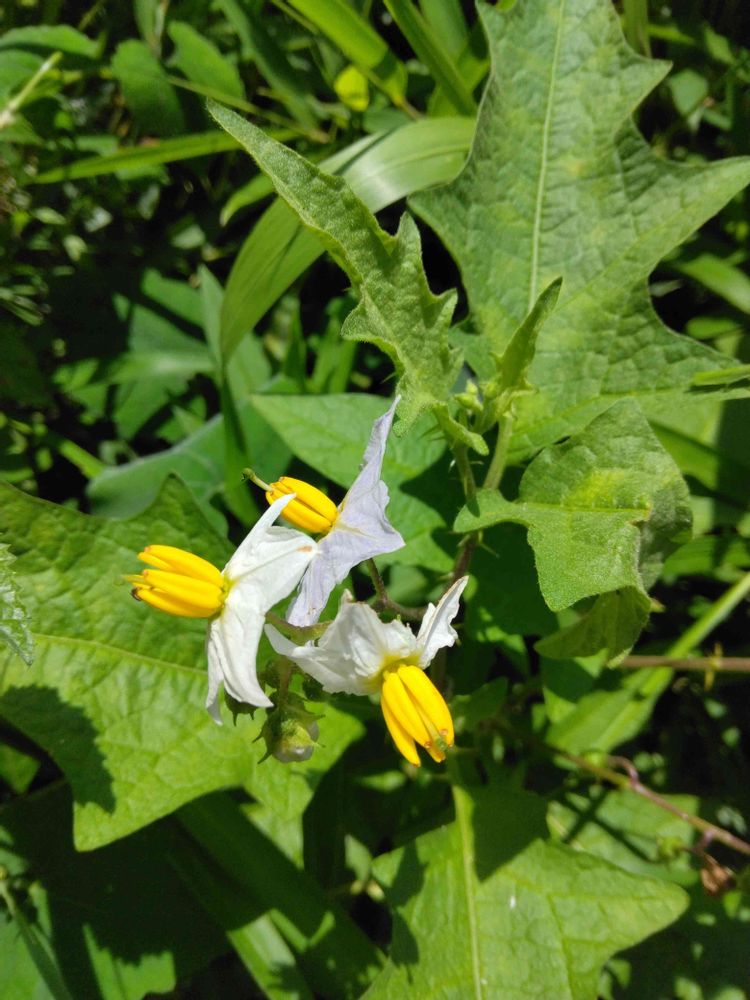 花は白または淡青色で、同科のナスやジャガイモに似ており、春から秋まで咲き続ける。