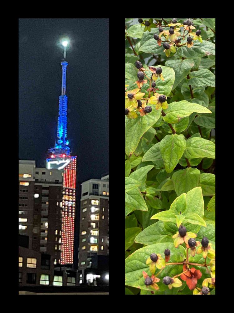 福岡タワー🗼と右の植物は名前がわかりません😆