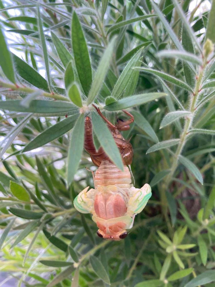 1時間前ですがブラシの木でアブラゼミが羽化してました( ^ω^ )