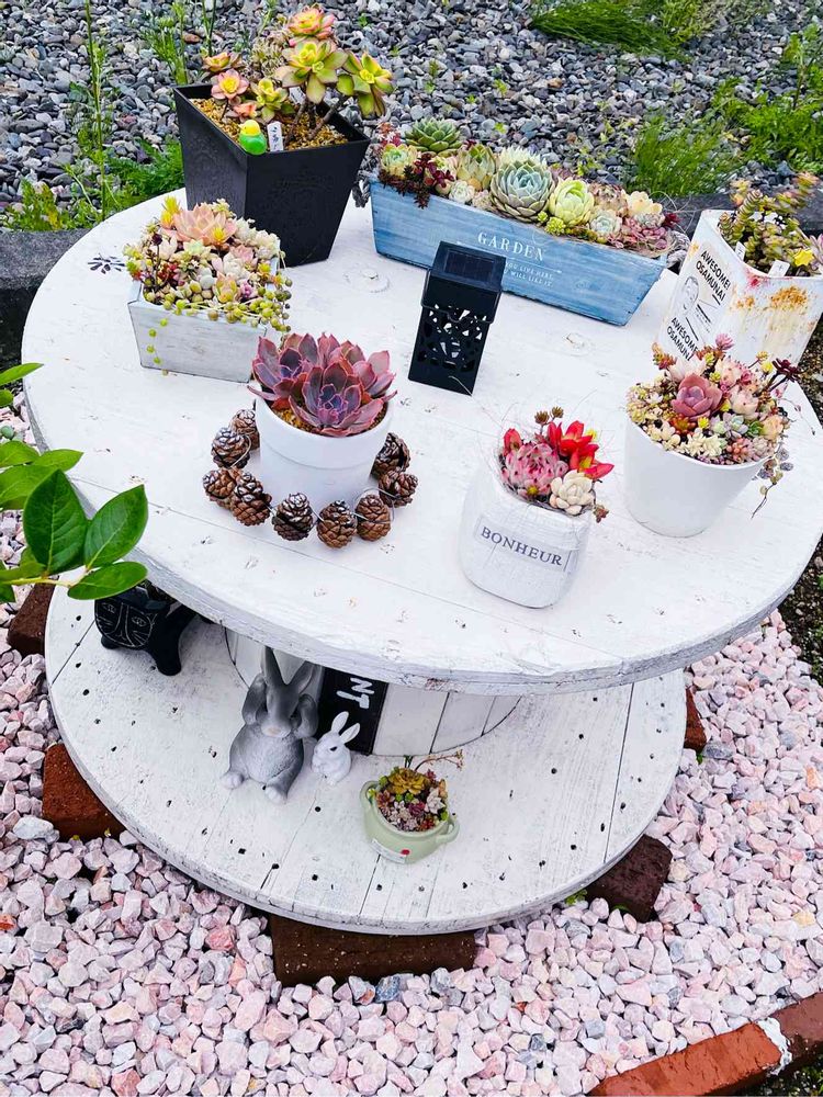 みち'sガーデンさんの小さな庭,多肉棚ケーブルドラム,癒しの投稿画像